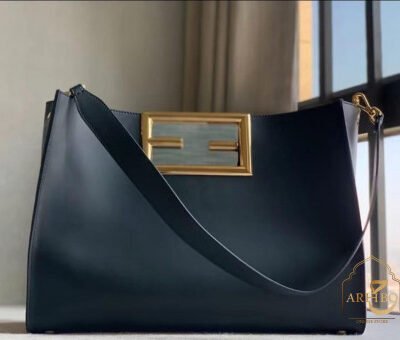 FF حقيبة يد متوسطة الحجم جلد نابا بشعار