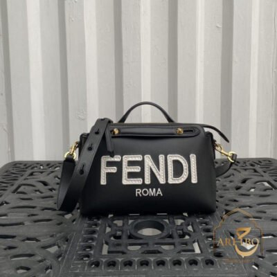 FF حقيبة يد متوسطة الحجم جلد نابا بشعار