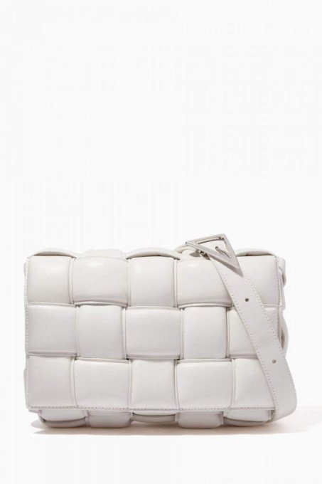 تمزج ماركة بوتيغا فينيتا معرفتها الواسعة في مهارة الصناعة التقليدية والصيحات العصرية في حقيبة كاسيت الكتف بسلسلة. صُنعت من جلد الماعز بتصميمها الهندسي الجذاب المزين بالتصميم المجدول المعروف للماركة. نسقيها مع فستان حرير سهل الارتداء وحذاء مفتوح من الخلف لإضفاء لمسة فخمة إلى هذا التصميم الفاخر.