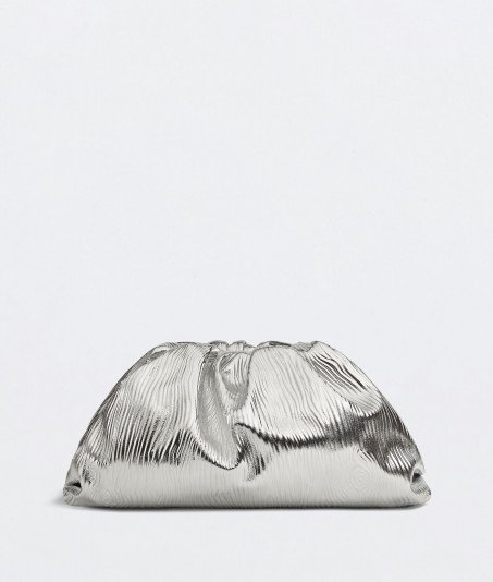 Large soft clutch in a leather bark• Magnetic frame• Unlined Material: 100% CalfskinColor: SilverHeight: 18 cm/ 7”Width: 38 cm/ 14.9”Depth: 18 cm/ 7” Made in: Italy
