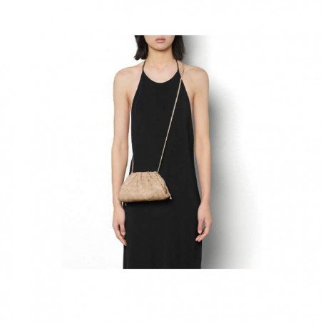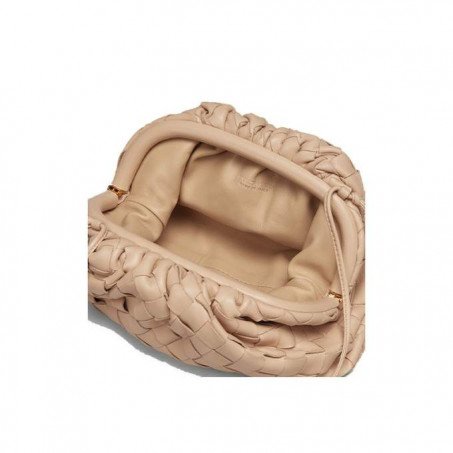 Soft voluminous clutch in woven leather Magnetic frame covered in folds of handwoven leather Iconic intrecciato weave in a subtly amplified new dimension  Single compartment lined in nappa  Slim leather shoulder strap  Smaller style of The Pouch, a brand icon that reflects Bottega Veneta’s heritage with a modern attitude