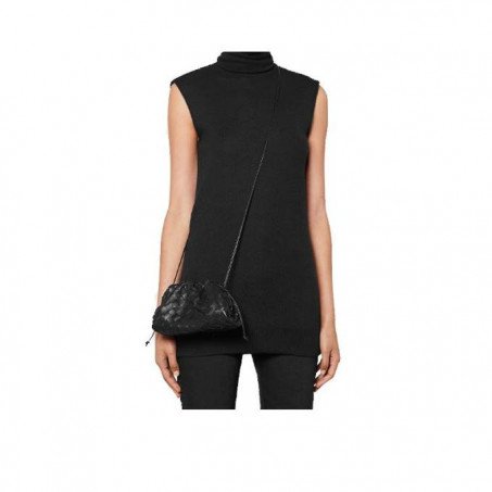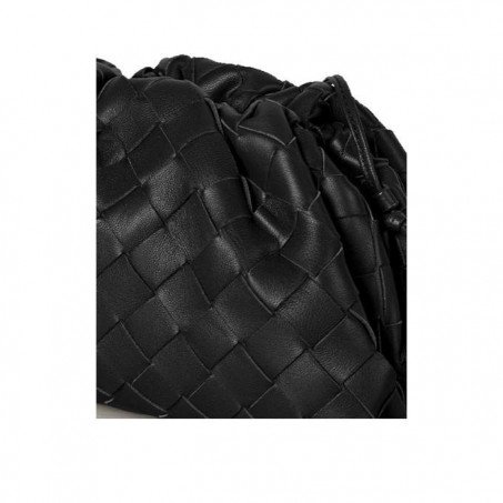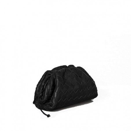 Soft voluminous clutch in woven leather Magnetic frame covered in folds of handwoven leather Iconic intrecciato weave in a subtly amplified new dimension  Single compartment lined in nappa  Slim leather shoulder strap  Smaller style of The Pouch, a brand icon that reflects Bottega Veneta’s heritage with a modern attitude