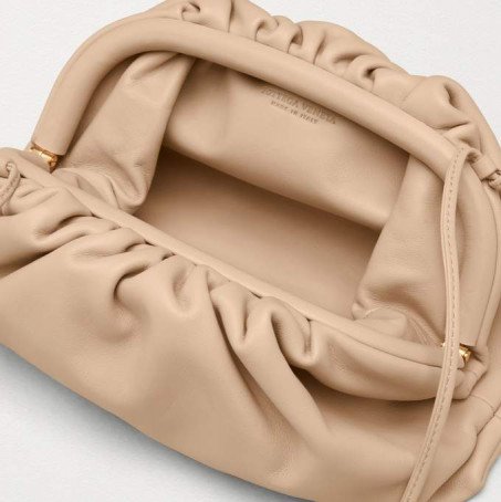 Bottega Veneta THE MINI POUCHSoft voluminous clutch in exceptionally supple calfskinMagnetic frame covered in folds of Butter Calf Single compartment lined in soft calf leather Slim leather shoulder strapSmaller style of The Pouch, a brand icon that reflects Bottega Veneta’s heritage with a modern attitude