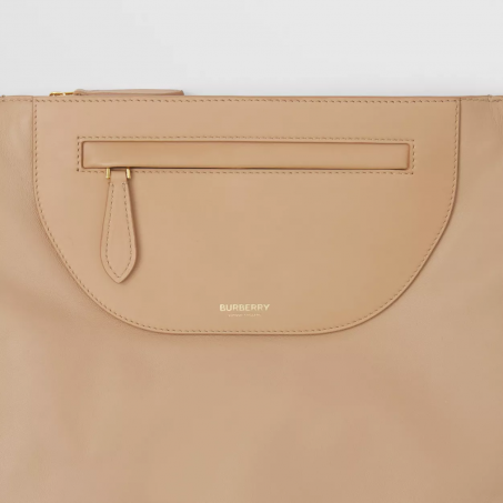 BURBERRY LEATHER AND LAMBSKIN OLYMPIA SCARF CLUTCH COOL BEIGE
