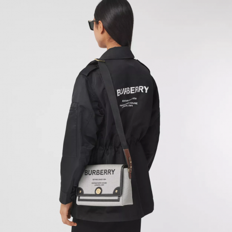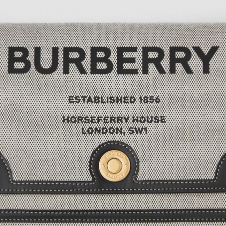 BURBERRY SMALL TRI-TONE CANVAS AND LEATHER TB BAG BLACKTAN