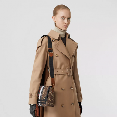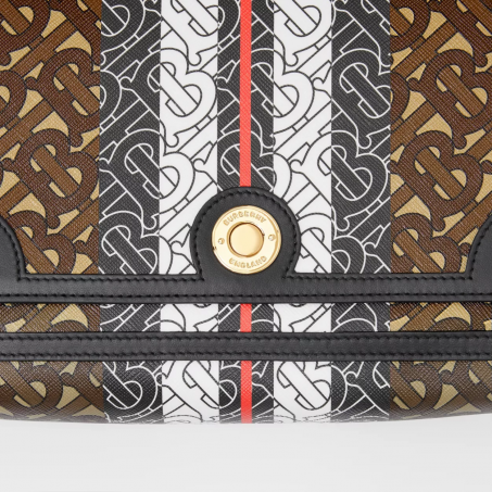 BURBERRY SMALL TRI-TONE CANVAS AND LEATHER TB BAG NATURALMALT BROWN