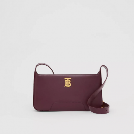 BURBERRY LEATHER TB SHOULDER BAG DEEP MAROON