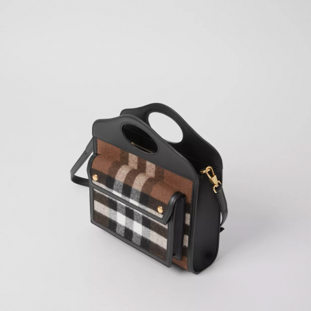 الرئيسية / الحقائب النسائية / حقائب بربري / BURBERRY MINI CHECK CASHMERE AND LEATHER POCKET BAG BLACK
