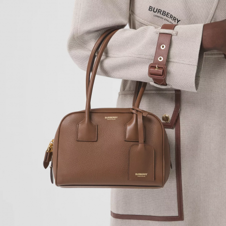 PRODUCT DETAILSA miniature take on our runway bowling bag in grainy Italian-tanned leather, embossed with our logo. The slim, structured style is finished with rolled leather top handles.21.5 x 8.5 x 15.5cm/8.5 x 3.4 x 6.1inShoulder strap drop: 19.5cm/7.7inOuter: 100% calf leatherTrim: 100% calf leatherLining: 55% cotton, 45% linenRolled leather top handlesOne interior slip pocketTwo-way zip closureHand-painted edgesPolished metal hardwareLeather-wrapped padlockLuggage tagEmbossed Burberry lettering at front and luggage tagMade in Italy