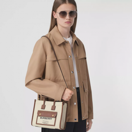 الرئيسية / الحقائب النسائية / حقائب بربري / BURBERRY MINI TWO-TONE CANVAS AND LEATHER FREYA BAG NATURAL /TAN