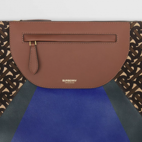 BURBERRY SMALL TRI-TONE CANVAS AND LEATHER TB BAG NATURALMALT BROWN