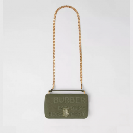 BURBERRY SMALL HORSEFERRY LININ COTTON CANVAS LOLA BAG DARK FERN GREEN