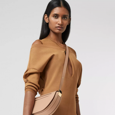 PRODUCT DETAILSA runway shoulder bag with a curved silhouette, sculpted from smooth leather. The slim, structured style features palladium-plated hardware and exterior slip and zip pockets for easy access.26 x 5.5 x 15cm/10.2 x 2.2 x 5.9inMin. shoulder strap drop: 27cm/10.6inMax. shoulder strap drop: 48cm/18.9inOuter: 100% calf leatherTrim: 100% lambskinLining: 55% cotton, 45% linenAdjustable shoulder strapOne interior card slotOne exterior zip pocket, one exterior slip pocket, two interior slip pocketsFoldover top with magnetic closureHand-painted edgesPolished metal hardwareMade in Italy
