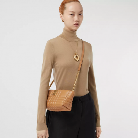 BURBERRY SMALL QUILTED LAMBSKIN SOFT LOLA BAG MAPLE BROWN