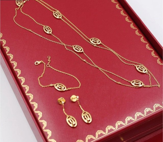 الرئيسية / إكسسوارات / CARTIER ACCESSORIES اكسسوارات كارتير / Double C Logo CHAIN NECKLACE + EARRINGS + BRACELET
