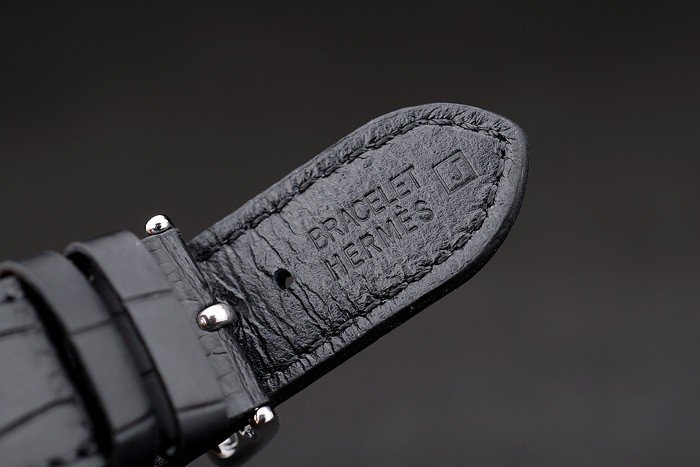 Bracelet: Black crocodile leather strap with heat embossed Bracelet Hermes Replica stamp and Hermes Replica engraved stainless steel hook-buckle clasp