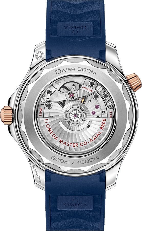 – Blue Ceramic Bezel with 18k Rose Gold Diving Scale