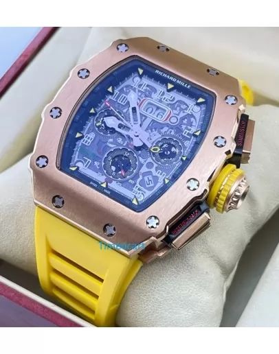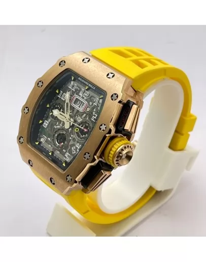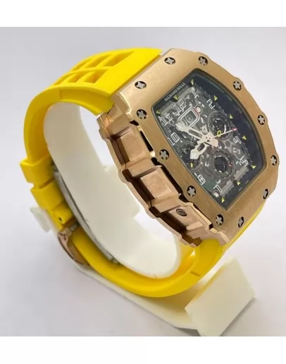 Richard Mille RM11 Rose Gold Yellow Rubber Strap Swiss Automatic Watch