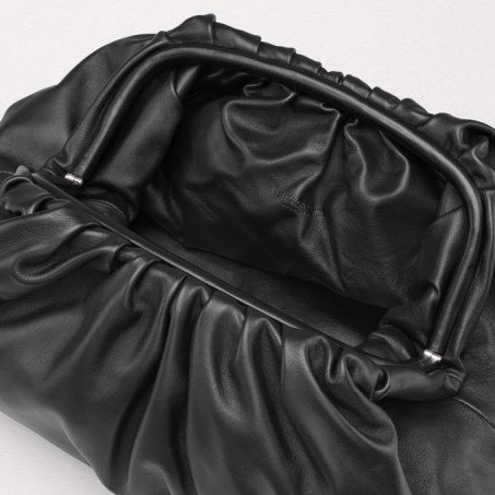 يشاهده 1 زائر فى الوقت الحالي.Soft oversize clutchMagnetic frame covered in folds of NappaSingle compartment lined in NappaDETAILSComposition90% Calfskin, 10% BrassColor: NeroHeight: 18 cm | 7.1″Width: 40 cm | 15.7″Depth: 18 cm | 7.1″
