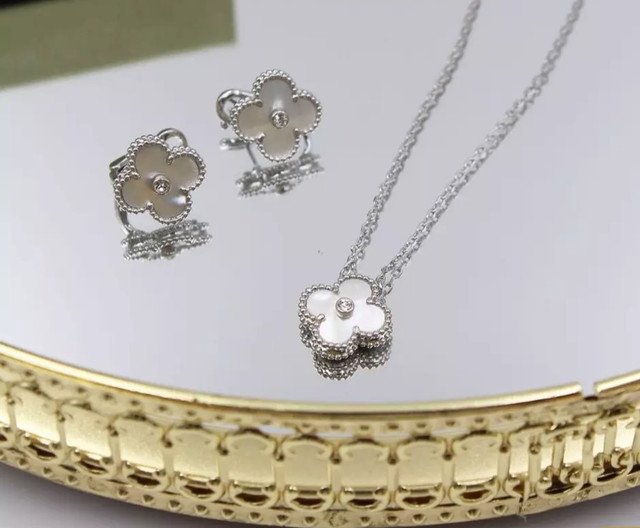 يشاهده 1 زائر فى الوقت الحالي.Item: Van Cleef Vintage Alhambra Set Silver Necklace&Earrings