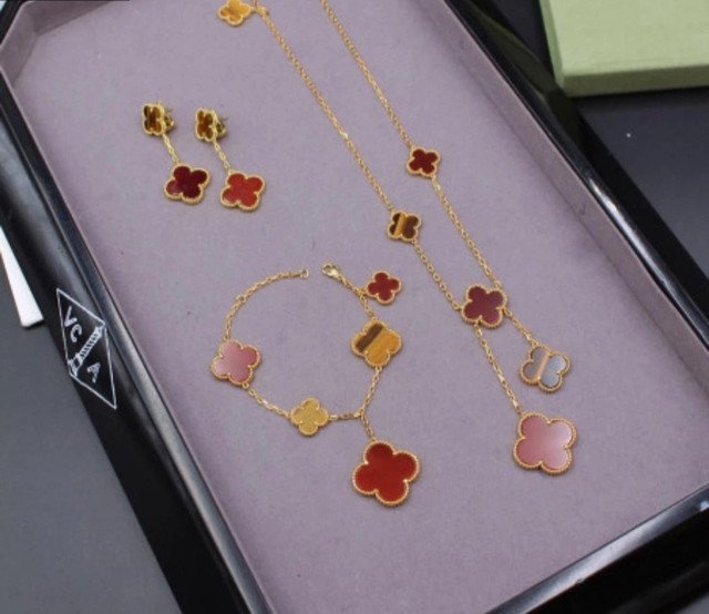 Van Clef Magic Alhambra Long Set Necklace & Bracelet & Earring Red