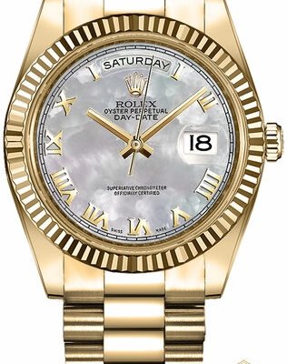 Rolex Day-Date 36 Mother of Pearl Roman Numeral Gold Watch 118238